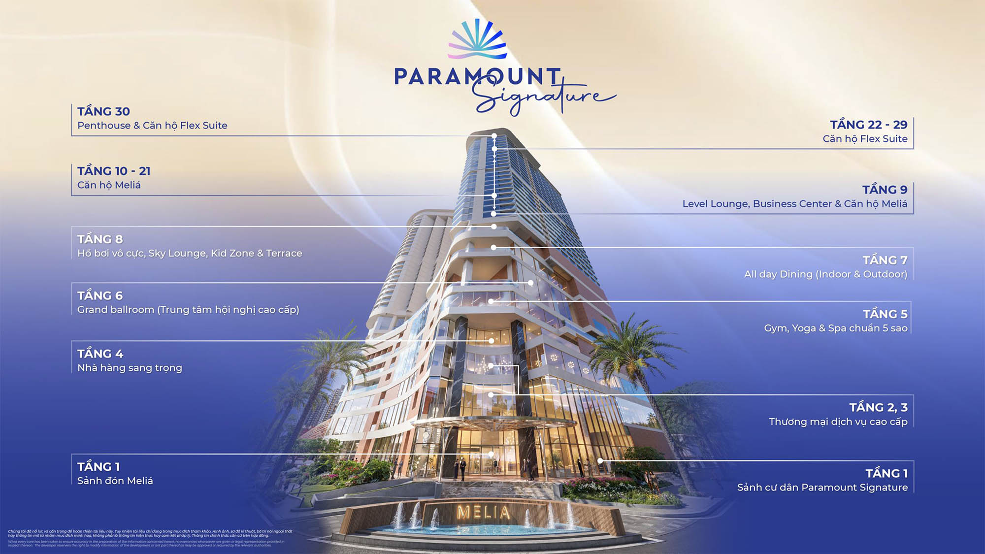 - Tầng 1 đến 8: hệ thống tiện ích & dịch vụ: sảnh đón, nhà hàng ý, BOH & Office, Gran Ballroom & Meeting rooms, Yhi Spa, Gym & Yoga, hồ bơi, Pool bar…